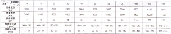 二、發(fā)酵罐主要技術(shù)參數(shù)表(供參考)